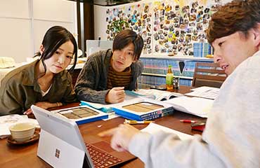 狭い社内ではありますが、営業・設計・工事 それぞれの担当がいつも会社にいます。(外出していなければですが)ですから皆で力を合わせて実現する家造りが体感できます。 -