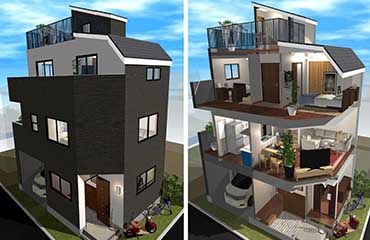 独自の発想と技術力私達と一緒にプランニングの打ち合わせをしていただいたり完成予想のCGの中を歩き回って 暮らしをイメージしていく中で気が付かれると思いますが、徹底的に無駄を省いた設計に取り組んでおります。限られた敷地内に御家族の御要望を濃縮するマイホーム。