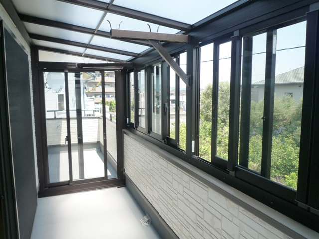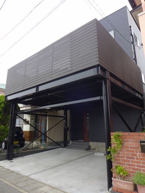 バルコニーを鉄骨でガッチリ製作。カーポートも併用になりました