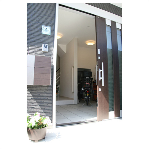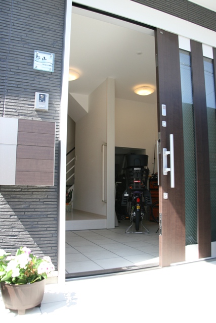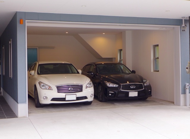 ビルトインガレージには引き戸。ドアが接触しない工夫