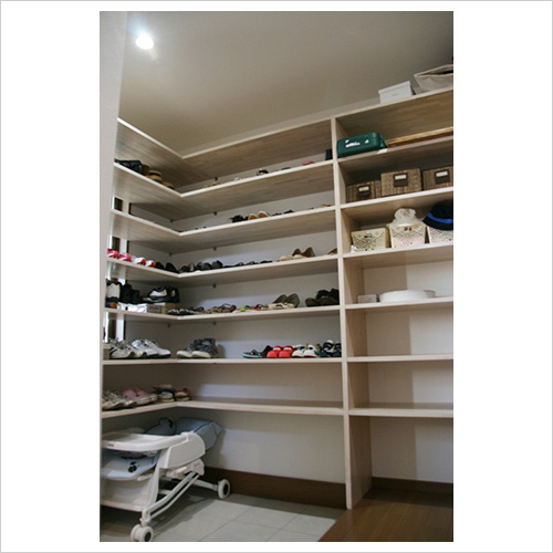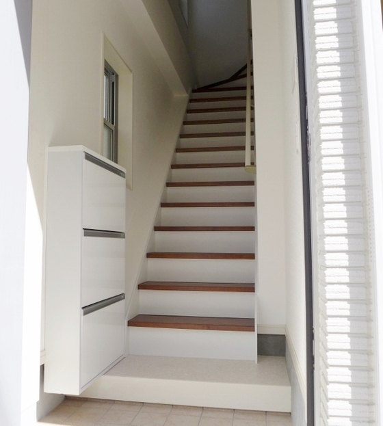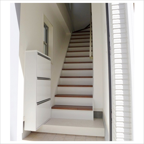 狭小専用の薄型シューズクローク採用。靴は斜めに収納される