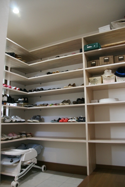 玄関横のシューズクローク。家族はこちらを経由して上がります