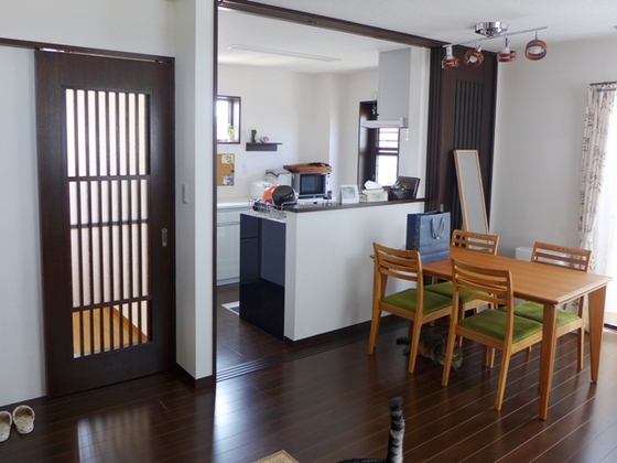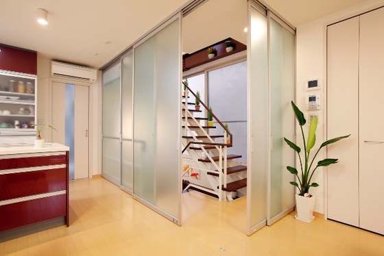 ネコちゃんの悪戯防止のために、キッチンは引き戸で仕切れます
