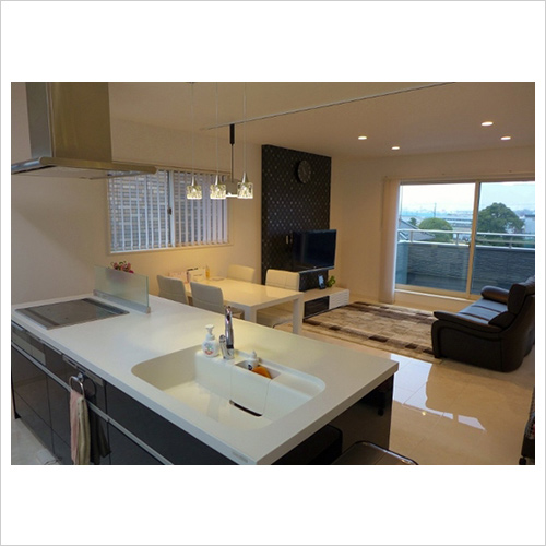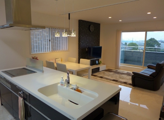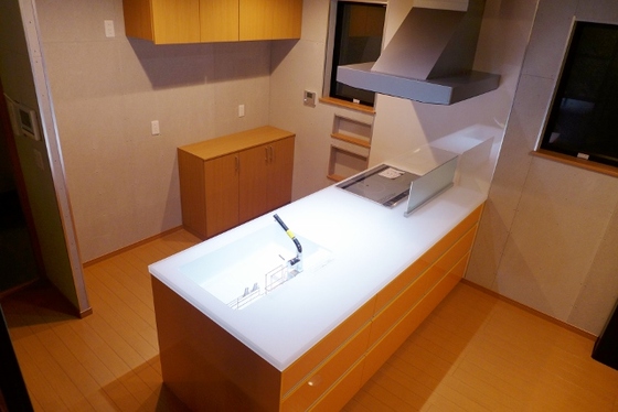 フルフラット対面キッチン。ダイニングがわからも収納たっぷり