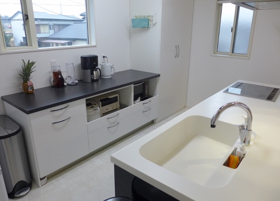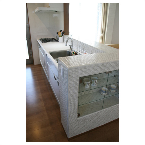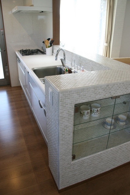 オンリーワンキッチン!タイル張りのカップボードを造り付け