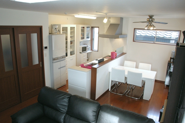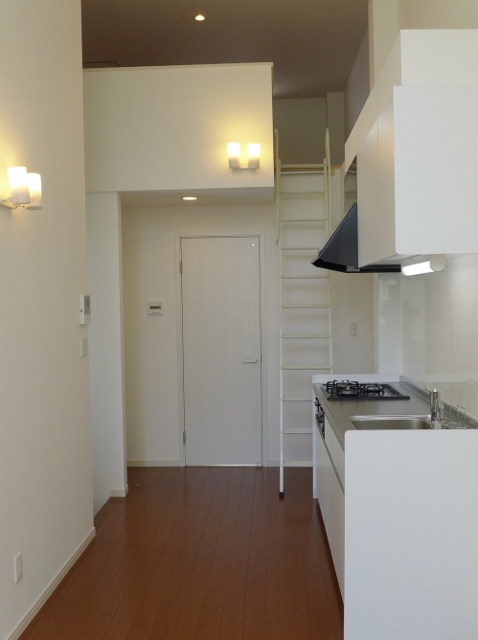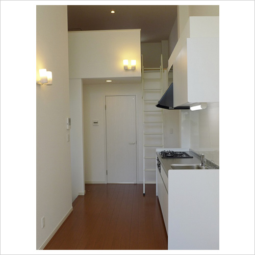 キッチンの奥は洗面・浴室。その上の屋根裏を有効活用