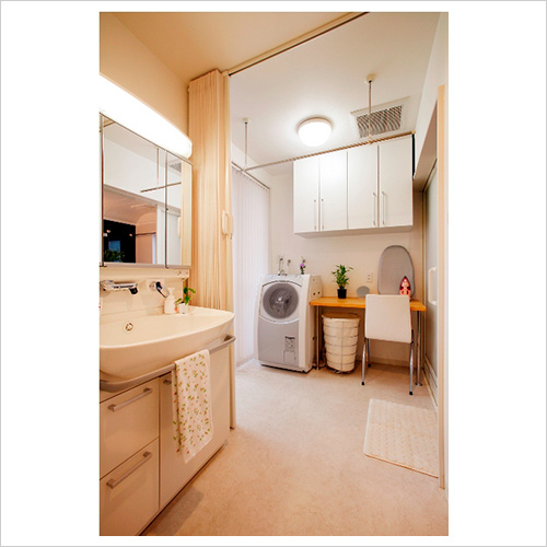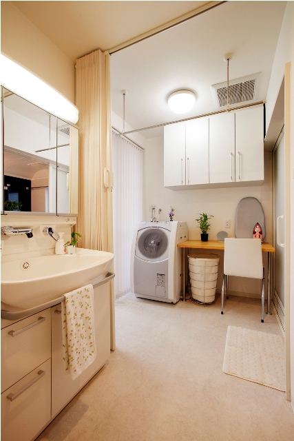 洗面・脱衣・洗濯・アイロン・家計簿・吊戸収納全部で6役