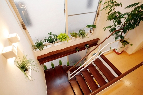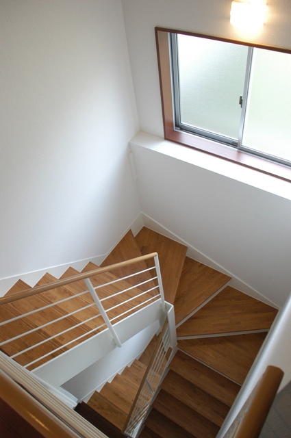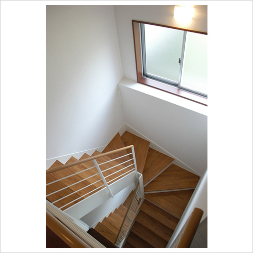 暗くなりがちな階段ホール。高窓にして解消