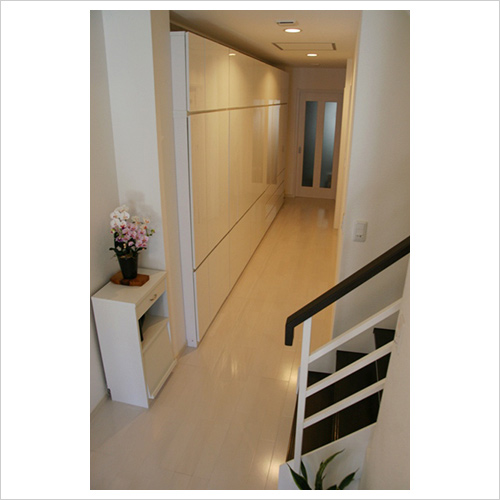 鉄骨柱の奥はデットスペース?そこには薄型収納を並べます