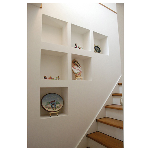 鉄骨柱の幅に合わせて飾り棚スペース確保