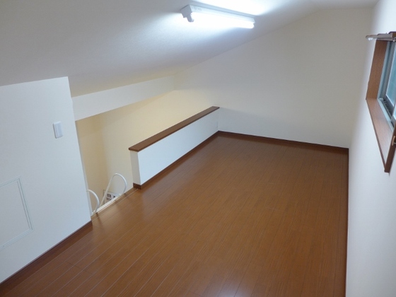 秘密基地的ロフト。リビングの明かりで予想外に明るい