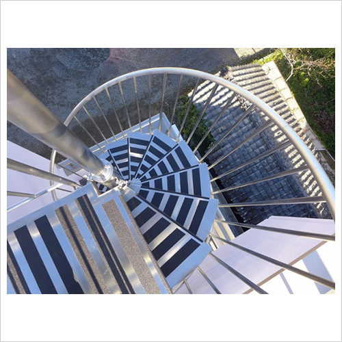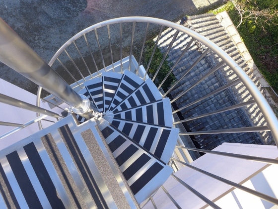 屋上へ上がるらせん階段。海が近いのでステンレス製