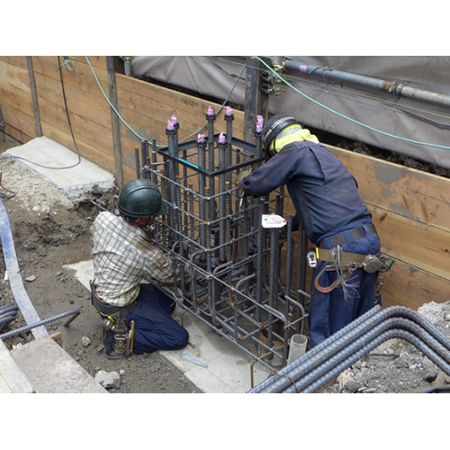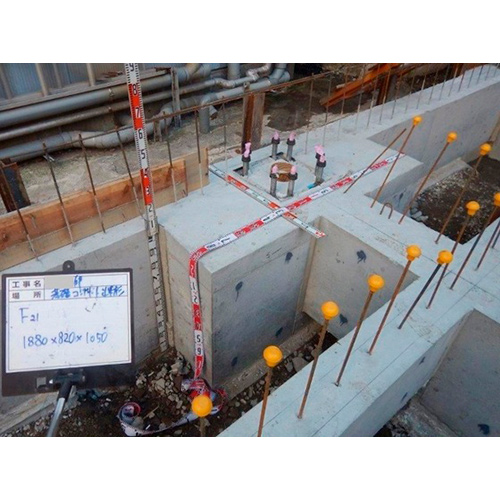 12.柱脚固定ベースの設置後に鉄筋組み